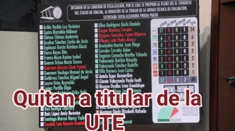 Culiacán, Sinaloa, 04 de abril de 2026.- El Pleno del Congreso del Estado de Sinaloa aprobó por mayoría la remoción de la titular de la Unidad Técnica de Evaluación, Silvia Alejandra Pineda Prado, a propuesta de la Comisión de Fiscalización, y además se propone extinguir esta Unidad.